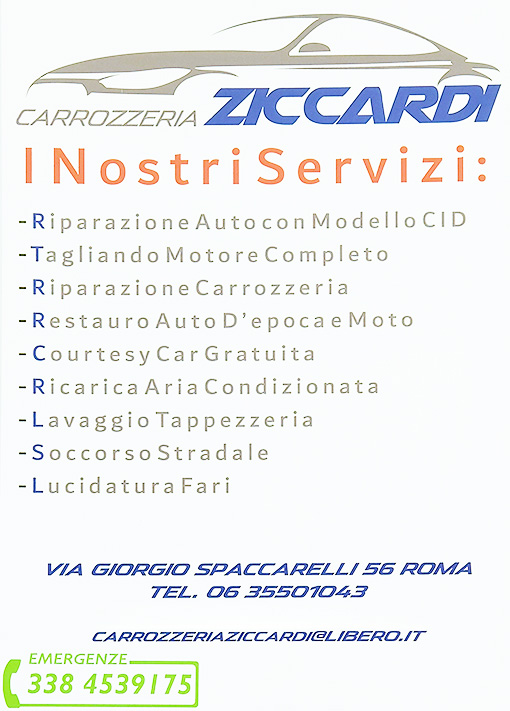 Riparazione di autovetture, moto, scooter, restauro auto d'epoca convenzionato con tutte le assicurazioni. Autocarrozzeria Ziccardi Plurimarche dal 1980. Autoccarrozzeria Torrevecchia, carrozzeria auto Torrevecchia.